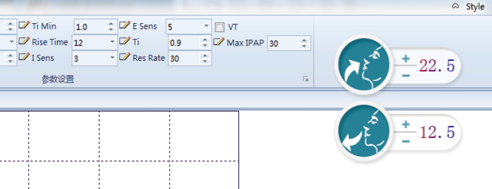 PC睡眠监测软件内嵌呼吸机滴定功能界面,可轻松的调整呼吸机治疗模式、治疗压力、吸呼触发等参数,真正的做到与睡眠监测软件高度集成,呼吸机同步精确回传呼吸监测参数,使临床在睡眠滴定工作中更加准确高效。