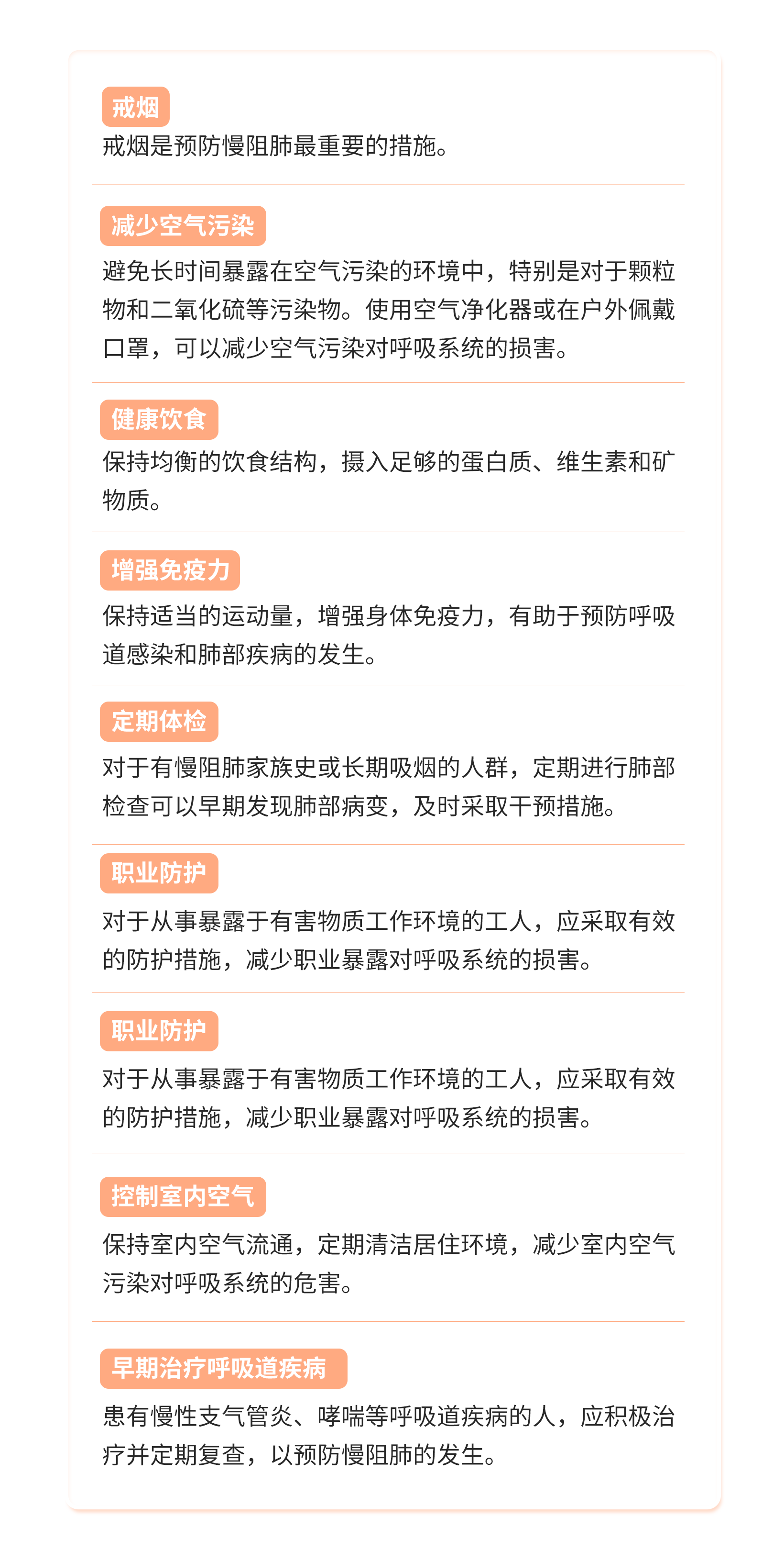 包括戒烟、呼吸锻炼、保持健康的生活方式等。